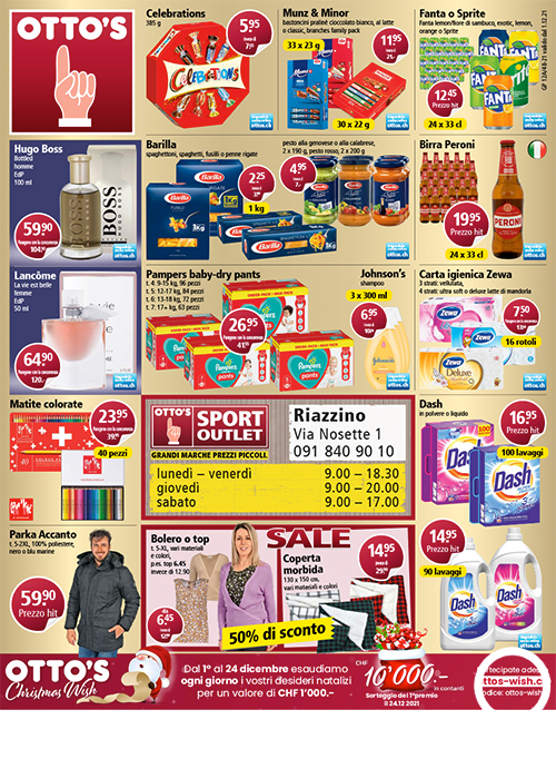 Il nostro Babbo Natale ha portato a termine il suo lavoro e ha estratto 144 Christmas Wishes! Per 24 giorni ha fatto un regalo ogni giorno a 6 fortunati/e vincitori/trici di tutta la Svizzera. E alla Vigilia di Natale verrà estratto il nostro premio principale di CHF 10'000.- in contanti! Siamo lieti dei numerosi desideri e vi ringraziamo di cuore per l’interesse dimostrato per la lista dei desideri di OTTO’S.